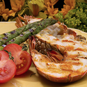 1. Combine all ingredients except lobster tail in processor and blend until almost smooth. 2. Spread 1 heaping teaspoon seasoned butter over each lobster tail. 3. In a small saucepan melt remaining seasoned butter; keep warm. 4. Grill lobster tails, shell side down, 6 min. Turn over and grill until meat is just opaque in center, about 2 min. Serve with melted butter.